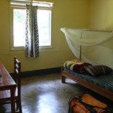 Our buildings contain several rooms with basic furniture, including a bed with mosquito net and bed linen, a reading table, and a chair. Most rooms have a single electric light. Visitors must bring their own towels and toiletries.